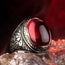 Men Red Agate Ring, Man Statement Ring, Engraved Silver Ring