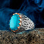 This turquoise men ring is a castle style engraved one. This oval gemstone model sterling silver ring is popular common among ring lovers. Handmade Turkish modern style rings are quite common also. Many of our women customers choose the ideal gift for their husband or boyfriend.