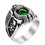 This silver men ring is Saudi Arabia National Men Ring. The eagle symbol together with the zircon stone symbolizes Saudi Arabia National power. This statement silver ring is a special design from AniRing Silver. The emblem of Saudi Arabia is symmetrically placed on both sides of the ring.