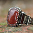 Red Zircon Stone Silver Ring, Engraved Silver Ring, Men Gemstone Minimalist Silver Ring, Men Silver Jewelry, Valentine's Day Gift for Him